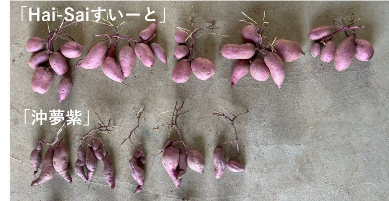 「Hai-Saiすいーと」は、「沖夢紫」に比べて多収で、いもの形状や揃いが良いのが特徴です。
