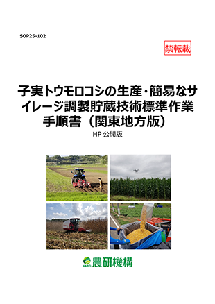 - 本手順書では、関東地方における生産者や技術指導・普及に携わる方々を対象に、子実トウモロコシの有望品種や簡易な調製貯蔵方法など、生産技術の概要を導入手順や事例とともに分かりやすく解説しています。