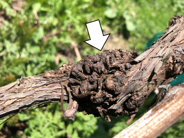 - 土壌中に生息する植物病原細菌Rhizobium radiobacterやAllorhizobium vitisなどによって引き起こされ、植物の根や茎などにがんしゅと呼ばれるこぶを形成する土壌病害です。根や地面に近い部位に傷等から植物体内に侵入すると考えられています。定植したブドウが繰り返し発病することで、長期的な生育不良、あるいは枯死に至るため、生産現場にとって大きな経済的被害をもたらす深刻な病害です。