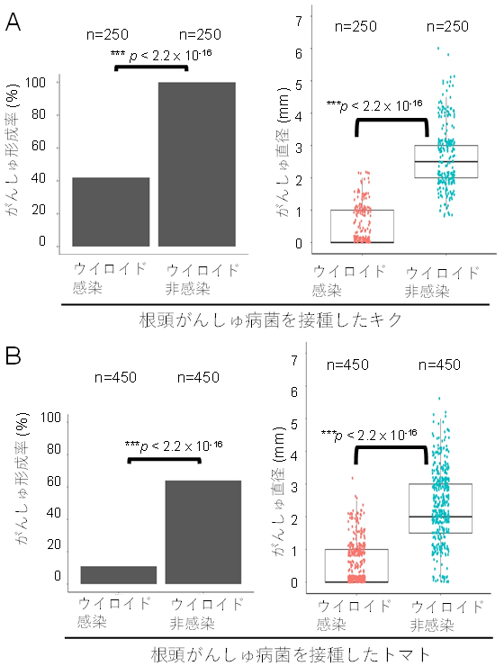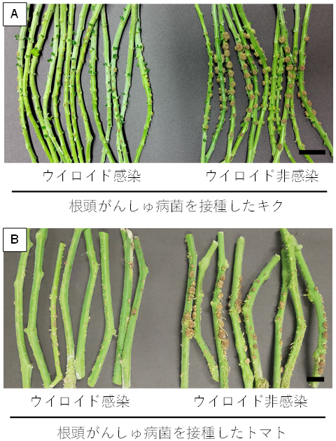 図3ウイロイドに感染した植物における根頭がんしゅ病の抑制効果