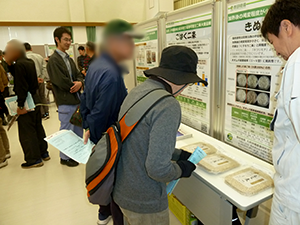 九州沖縄農業研究センターの概要を紹介する動画の上映や、パネル展示による活動紹介を行いました。パネル展示では、九沖研が九州・沖縄地域に持つ7つの拠点等について紹介し、また各研究領域における取り組みや成果を、研究者が直接わかりやすく紹介しました。さらに、農業の最新技術や取り組みをテーマにしたミニセミナー(害虫防除、肥効見える化アプリ、スマート農業、大豆新品種など)も開催し、研究の魅力を身近な情報とともにご紹介しました。