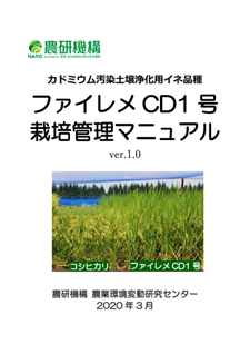「カドミウム高吸収イネを用いたカドミウム汚染水田の土壌浄化技術」とカドミウム汚染土壌浄化用イネ品種「ファイレメCD1号」の水田における栽培管理法を紹介した資料です。 |