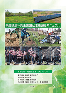果樹栽培において古くからの問題である凍害による被害を減らすため、みどりの食料システム戦略実現技術開発・実証事業のうち農林水産研究の推進(委託プロジェクト研究)「現場ニーズプロジェクト(果樹等の幼木期における安定生産技術の開発)」(JPJ008720)(2020 ~ 2024 年)において、対策技術の開発に取り組みました。凍害防止には地下部の対策、管理が不可欠であることを示すとともに、現時点でコスト面、労力面から実施可能な管理法とその凍害防止効果を取りまとめてマニュアとして取りまとめました。本マニュアルを活用することで、植え付けた苗木の凍害発生が抑制され、果実の安定生産につながることになれば幸いです。 |