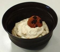 Taishi Food Inc. (Sannohe-machi, Aomori), and Tohoku University have developed this good-tasting soy-milk cream product. It is a vegetable cream product produced from soy milk that is safe for children and adults who are allergic to dairy products. Moreover, it is expected to be used in a wide range of applications: making healthy soy-milk soup (Photo 2) and using it as an ingredient for dip cream to add smooth texture and baking bread with soy cream mixed in the dough.