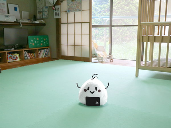 ここがメインの保育室なんだって。和室にカーペットが敷いてあるよ。