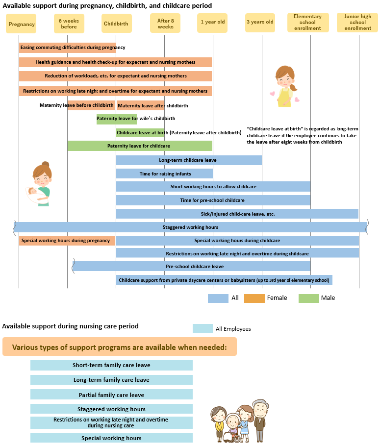 It is also important to accelerate progress toward the achievement of work-life balance by improving working environment in which each person can maximize their abilities.