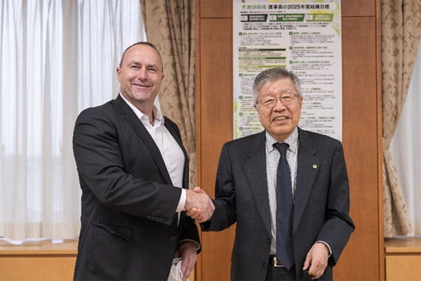 After touring the two facilities, they had a meeting with President KYUMA Kazuo. During the meeting Dr. Roche showed great interest in the bacterium in cattle rumen that NARO had discovered can reduce methane emissions from cattle, as it could help reduce GHG emissions from livestock production in New Zealand. According to Dr. Roche, reducing GHG emissions from livestock production is a critical issue for New Zealand because agricultural emissions account for 50% of New Zealand's emissions and most of these emissions are from livestock production. As well as that, they discussed biochar and smart agriculture technologies.