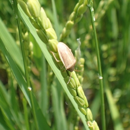 イネカメムシとは、斑点米カメムシ類の1種で、近年急激に増加しイネの重要害虫となっています。このカメムシは、1950年代まではイネの主要害虫でしたが、その後減少し、2000年前後までは一部地域のレッドデータブックに載るぐらい個体数の少ない希少種となっていました。今回のサイエンスカフェでは、このイネカメムシが