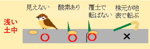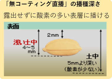 図2:浅い土中への播種により、無コーティングでも鳥害や転び苗を軽減し、
