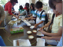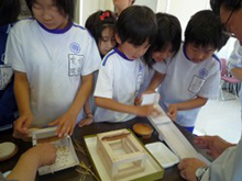 今年度から総合学習の時間が減ったため、授業時間に配慮して、体験を中心にした内容を計画しました。また、簡易な手作りの道具で「いかに楽しく体験してもらうか。」を心がけ、内容を工夫しました。