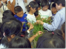 対応する研究者も工夫をこらして、ごはんの秘密や稲の不思議、害虫・病害などの授業をしたり、見学者用に作付けされた展示圃場では、おもしろい名前の稲を見つけては子供たちの歓声があがっていました。