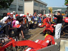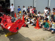 天気にも恵まれ、例年好評の風おこし実験、籾すり体験、変わったおコメの試食などのほか、今年新たに「大型農作業機械の見学」や、「いもち病菌の顕微鏡観察」も行いました。