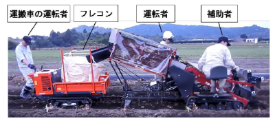 (2021年発表) 回転搬送機構により土塊除去するサトイモ拾上機と運搬車によるサトイモ拾上・収容体系 |