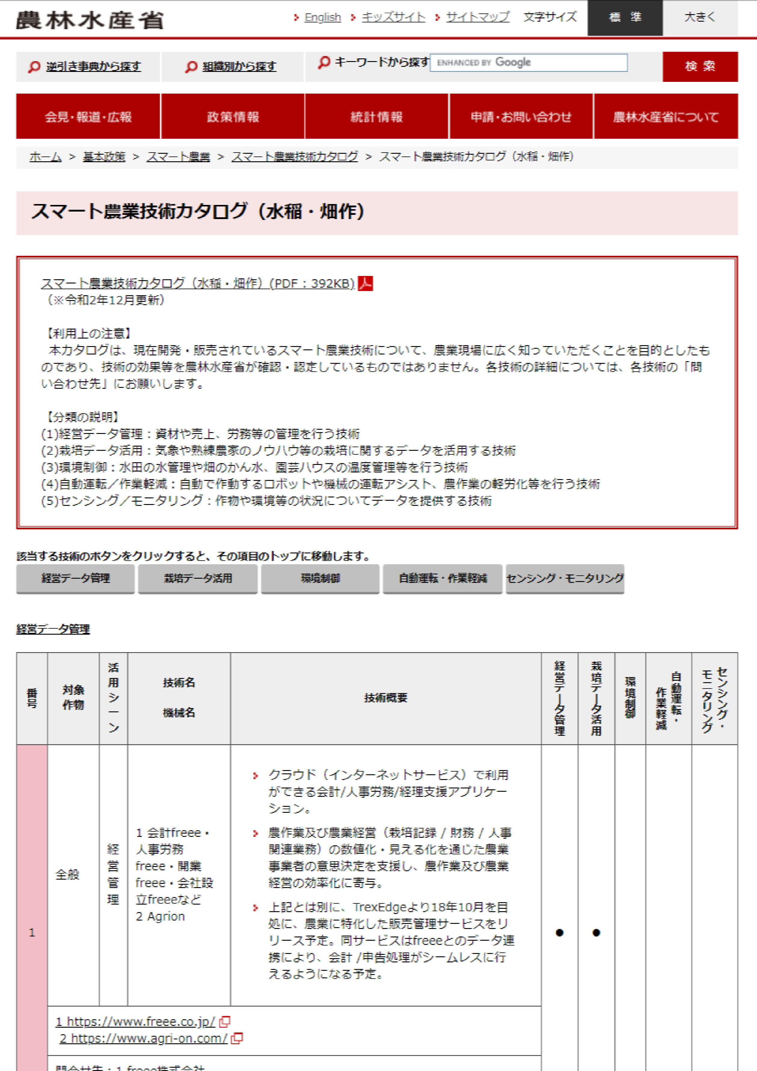 スマート農業技術カタログ(水稲・畑作)