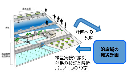 沿岸域減災研究棟は、津波などによる浸水被害の再現や農地などを活用した減災効果を検証する研究施設です。