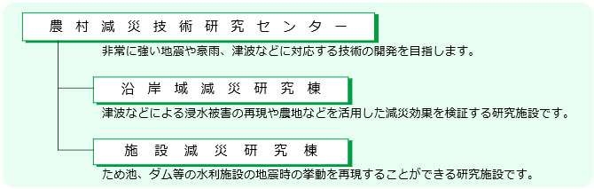 農村減災技術研究センターは沿岸域減災研究棟と施設減災研究棟の2つの研究棟から構成されています。