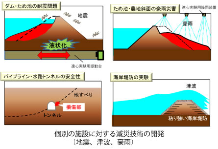 - ため池,農業用ダム等の農業水利施設の地震時の挙動解明と対策法の開発