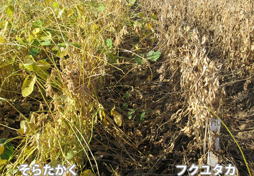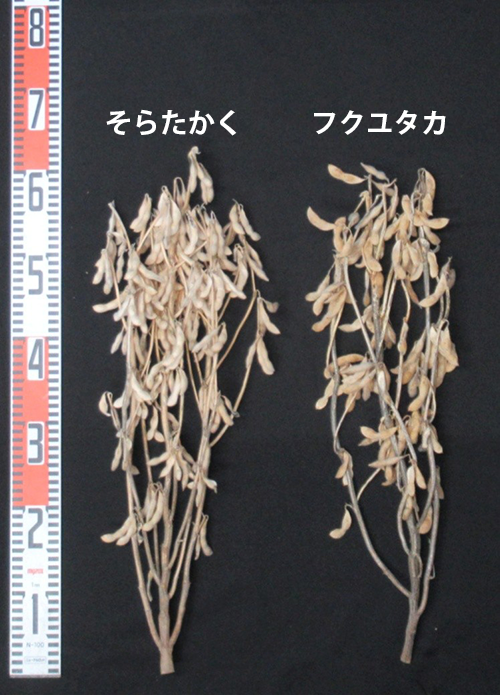 「そらたかく」と「フクユタカ」の植物体の比較です。