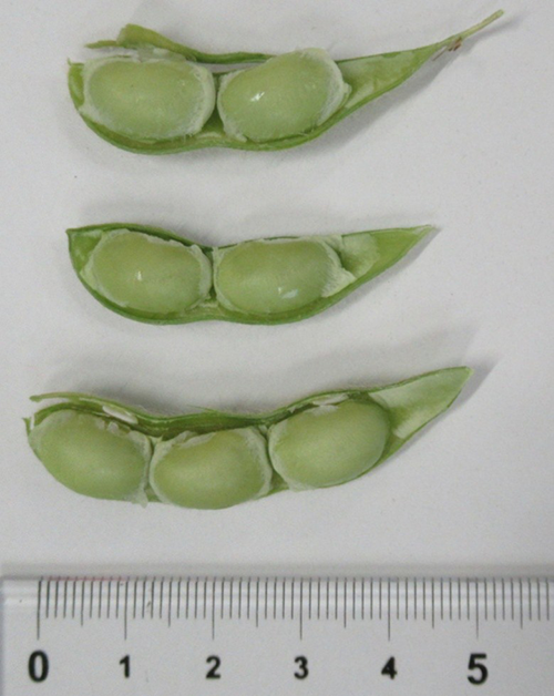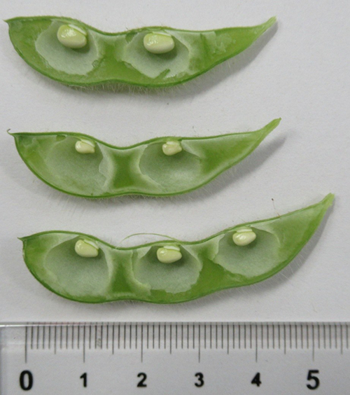 大豆では、まず莢のガワが大きくなって、その後で種子が大きくなるんです。
