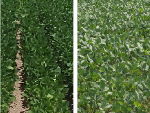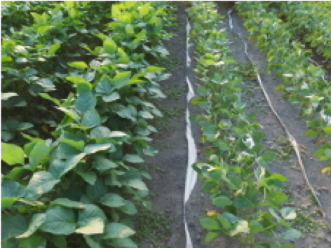 開花期前後にはダイズが地面を完全に覆い、必要な水の量が最大となります。