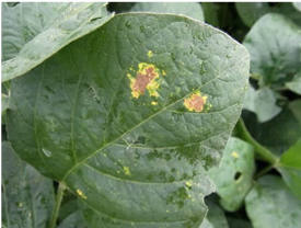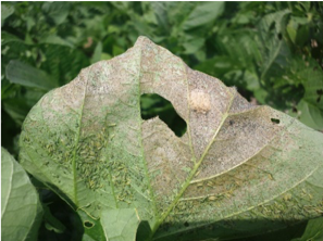 被害の様子:吸汁部位が黄化し、加害が進むと落葉する。 発生が多い場合は、葉の黄化が生じ、早期落葉被害が発生する。 植物ウイルス病の媒介害虫としても重要で、ダイズではダイズわい化病を媒介する。