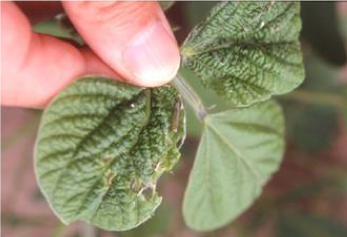 ダイズ被害葉(葉巻)