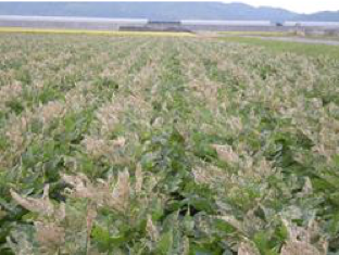 被害圃場(葉の黄変)