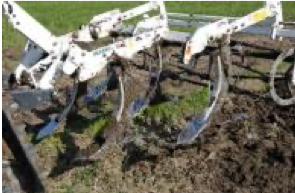 V字刃でV字ブロック成形と持上げにより土塊を破砕。70cm深までの全面・全層を下層土が混和することなく破砕でき,しかも礫が比較的多いほ場でも施工が可能です.