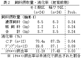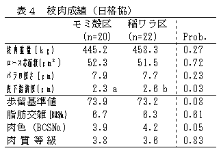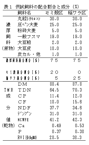 以上の結果、黒毛和種去勢牛の肥育前期において、未処理モミ殻は稲ワラの代替として80%(原物重量比)まで代替が可能である。
