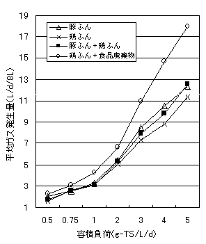 家畜ふん尿、食品廃棄物を混合し発酵させることにより、ガス発生量は増大する。また鶏糞を発酵させる際、豚ふん、食品廃棄物を混合させることにより発酵が安定する。