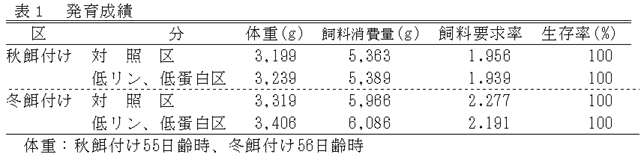 調査期間:秋餌付け21~55日齢、冬餌付け21~56日齢
