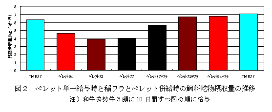 安価な高蛋白飼料であるトウフ粕を利用したTMRの給与により、低コスト肉牛生産は可能となった。しかし、給与面でトウフ粕のサイレージ化の手間やTMR給与に取り組めないことから肥育利用は進んでいない。そこで、トウフ粕を利用したTMRを更に利用しやすくするためペレット化を試みた。ペレットの製造には、高温、圧縮過程における殺菌効果と飼料の物理化学的変成に加えて品質や流通性の改善が期待できるエクストルーダを使用した。