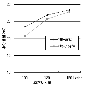 図1 原料の投入量とフレーク状飼料の排出時の水分含量