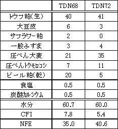 トウフ粕を利用した流通可能な効率の良い肉牛用飼料を開発するため、二軸式エクストルーダを用いて肉牛肥育用TMRのペレット成型加工を試みたが、加工時の加圧、摩砕により有効繊維長が確保できず採食量が低下し、水分も減少させることができず保存性が悪く実用的な製品とはならなかった。そこで、稲ワラ等の繊維質飼料を除いてトウフ粕を利用した流通可能な配合飼料の加工をしようとし、加圧、加熱時のエネルギーを水分の蒸散に利用して保存性を向上させる製造方法を試みた。