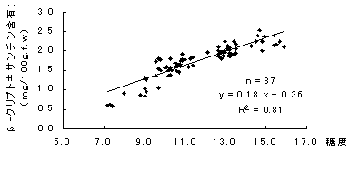 図1 糖度と果肉中のβ-クリプトキサンチン含有量との関係