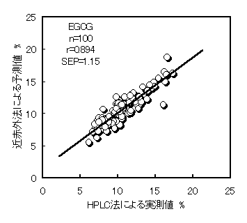 図4 EGCGの近赤外法による予測値とHPLC法による実測値との相関