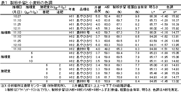 | [キーワード] | 小麦、あやひかり、播種適期、適播種量、施肥 |