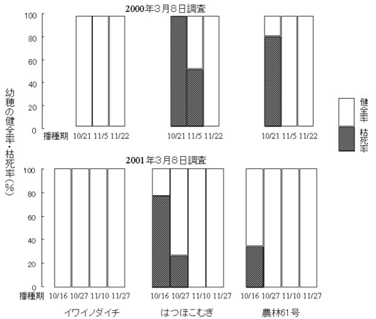 表1 早播き(10月下旬)及び標準播種(11月下旬)におけるイワイノダイチの