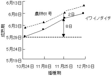 図2 イワイノダイチと農林61号の成熟期