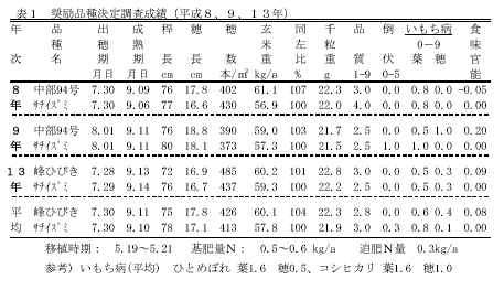| 研究課題名 | :水稲奨励品種決定調査 |