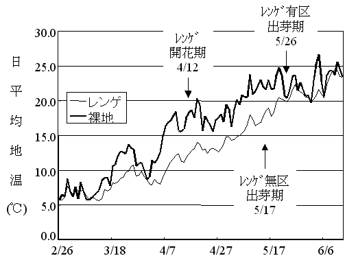 図2 レンゲ生育期間中の地温の推移(2001年)