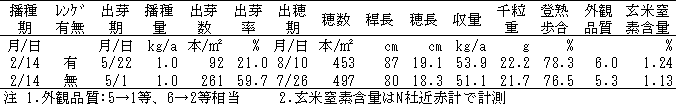 表2 レンゲの有無と生育、収量、品質の関係(コシヒカリ、2000年)
