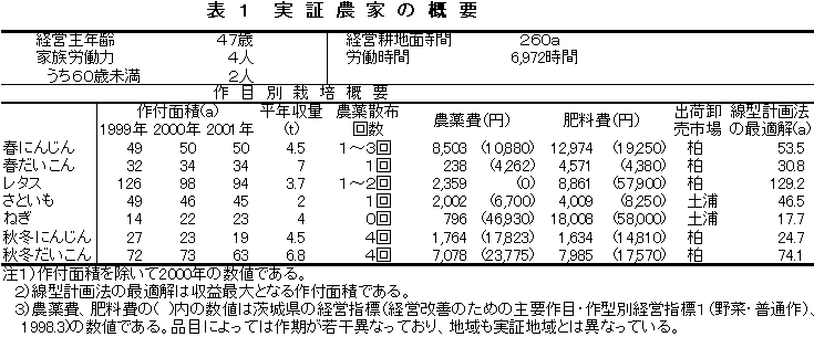 地域総合研究(関東平野高品質野菜)の実証農家は、輪作を基本として土壌消毒代替技術を取り入れた環境保全型の露地野菜作を実践しているが、その経営データから輪作型の作付体系の特質と太陽熱処理等の土壌消毒代替技術の導入条件を明らかにする。