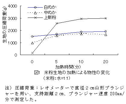 - 酒造米ぬかを水と練り合わせた場合、水に溶解して糊状となり、加熱すると上新粉は速やかに硬度が増すのに対して、酒造米ぬかはほとんど変化せず、糊状のままである(図1)。従って、酒造米ぬかの利用方法で「水と練り合わせる工程」を含むことは困難である。