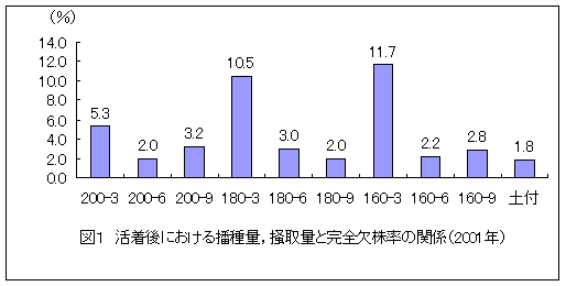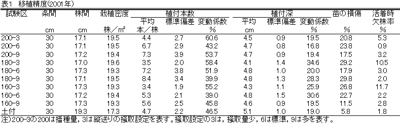 そのため,育苗時の播種量と移植時の掻取量を調節して,最適な植付本数を把握するとともに移植精度の向上を図る必要がある。