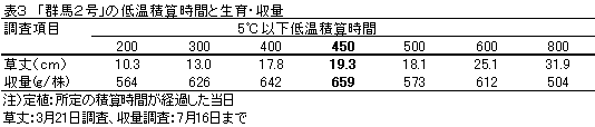 イチゴ「群馬2号」は高温期でも果実が硬く、5℃以下低温遭遇量450時間で保温を開始する半促成栽培に適する。「群馬3号」は大果で食味が良く、休眠が浅いため促成栽培に適する。