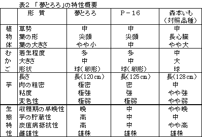- 現在普及している「P-16」よりも粘りが強く(1.6倍)、肉質は緻密で白く、ジネンジョ特有の香りが高くて良食味である(表1)。