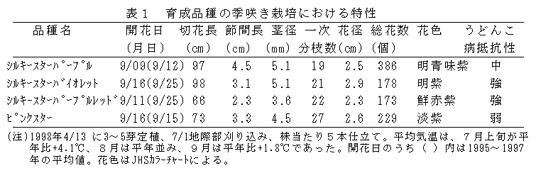 - 「シルキースターバイオレット」の育成経過と特性(図1、表1)