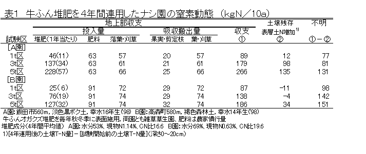 堆肥由来全窒素投入量からみたナシ園への牛ふん堆肥施用基準