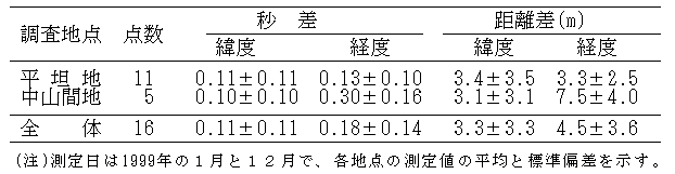 表1 GPSによる位置決定精度(年間比較)